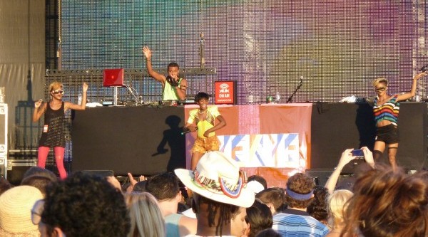 After Destructo we met up with Michelle’s friends Kim and Steph and proceed to get some beers. As we were sipping on that delicious cold beverage, Baltimore’s Rye Rye was heading on stage. What a cool act she had, dancers on stage, DJ up top dropping some electro-hop beats with island flavor . She is a really great performer and puts on a high energy show.