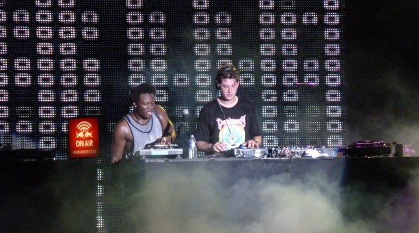 Next up was dubstep duo, Skream & Benga that led us into the night. Now, this was a show, they had the crowd working from beginning to end (90 minutes). Skream & Benga were behind the decks and had an Emcee who was hyping up the crowd. They dropped some heavy beats in the fashion they are known for and had the crowd screaming like monkeys (ooh ah ah ah) and calling the ladies ‘Barbie Ravers’. It was really great to see the crowd dig the dubstep vibes, a genre that is not that big over here. This set was probably the best I saw that night. After they finished up, we were a sweaty mess and needed some water to rehydrate, recoup and get ready for the next act, Sleigh Bells.